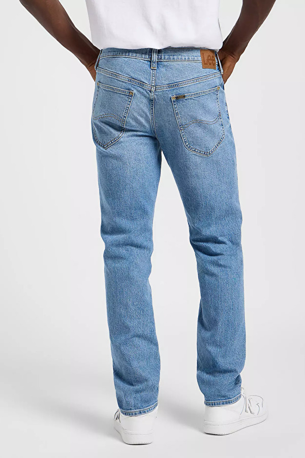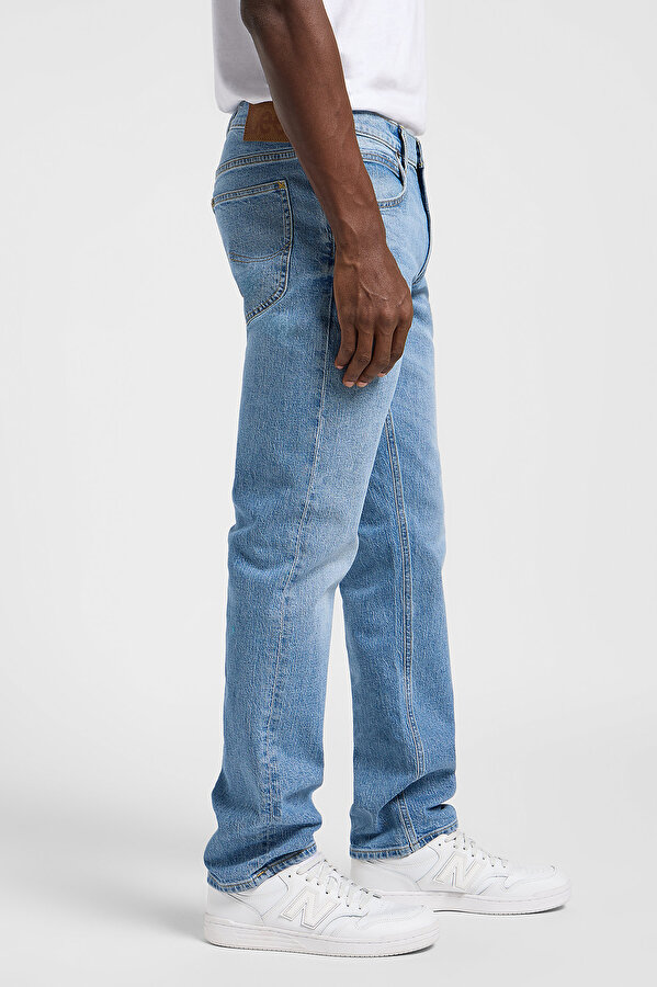Фирменная металлическая фурнитура, традиционный патч Lee и конструкция с пятью карманами отражают аутентичный стиль бренда и его внимание к деталям.