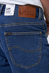 Фірмова металева фурнітура, традиційний патч Lee та конструкція з п'ятьма кишенями відображають автентичний стиль бренду та його увагу до деталей.