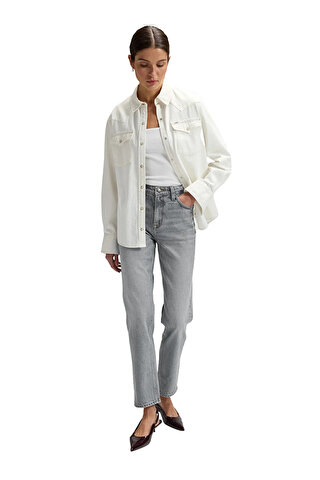 Модель має прямий крій від стегна до щиколотки та сучасну укорочену довжину.
