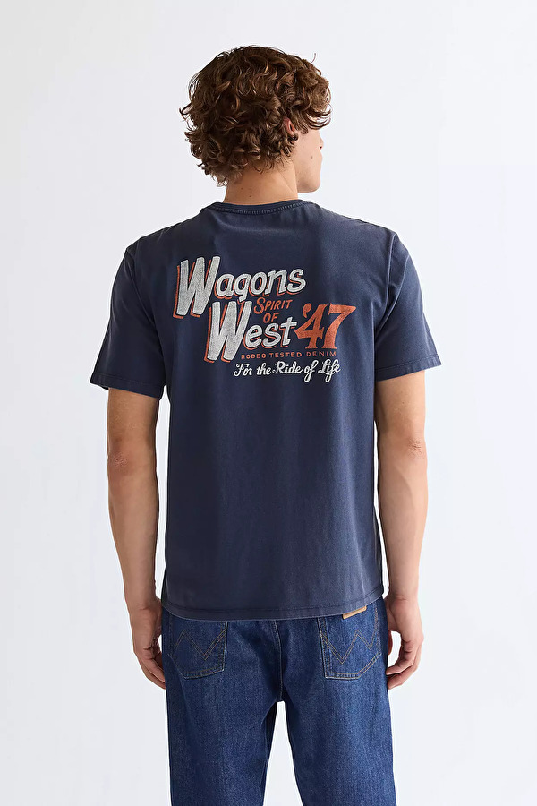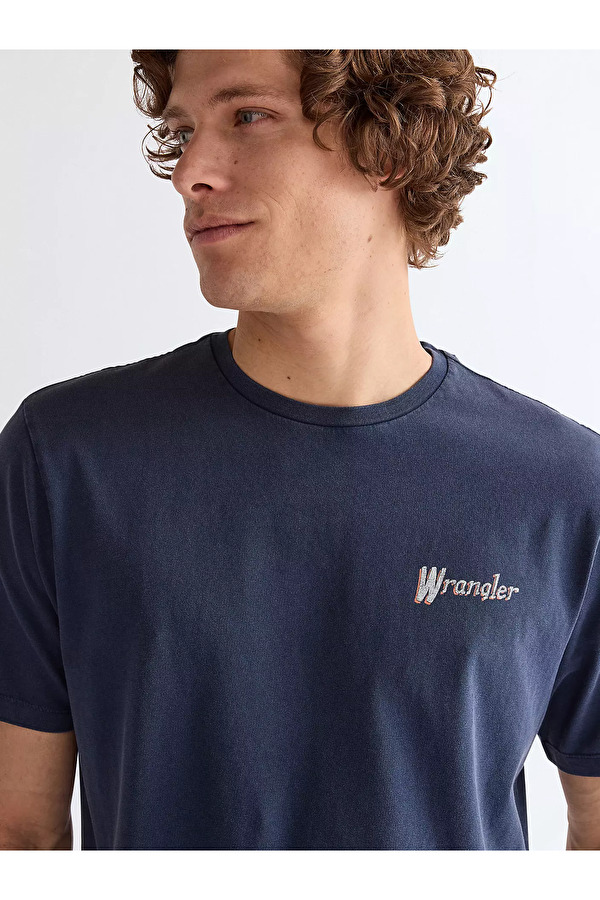Футболка Wrangler Graphic Tee — выразительная базовая модель, в которой минимализм сочетается с фирменной графикой и современной эстетикой повседневного стиля. Свободный прямой крой и удлинённая линия плеча создают непринуждённый образ, обеспечивают комфортную посадку и актуальный силуэт с лёгкой расслабленностью. Классический круглый ворот выполнен с эластичной окантовкой, благодаря чему он аккуратно держит форму и не деформируется со временем. Выполнена из мягкого хлопкового трикотажа, который отличается приятной текстурой, воздухопроницаемостью и износостойкостью. Представлена в синем цвете с фиирменним графическим принтом. Усиленные швы и продуманная отделка подчёркивают уровень исполнения, характерный для бренда Wrangler.