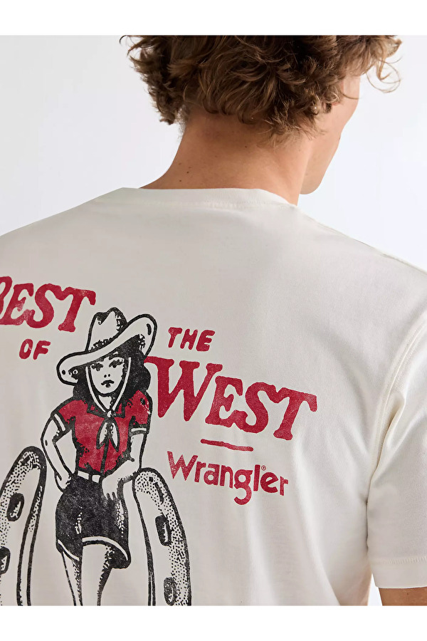 Футболка Wrangler Vintage Tee — это классика, вдохновлённая архивными моделями бренда и эстетикой винтажного денима. Слегка свободный силуэт с аккуратной посадкой по плечам создаёт естественную линию, отсылающую к классическим футболкам прошлых десятилетий, и подчёркивает непринуждённый стиль. Ткань изготовлена из высококачественного плотного хлопка, приятного к телу и обладающего отличной воздухопроницаемостью. Материал мягкий, но при этом достаточно плотный, чтобы держать форму и сохранять аккуратный внешний вид даже после многократных стирок. Изделие имеет классический круглый вырез с эластичной, аккуратно обработанной горловиной, которая хорошо держит форму и не растягивается со временем. Представлена в белом цвете с графическим изображением. Усиленные швы и продуманная отделка подчёркивают уровень исполнения, характерный для бренда Wrangler.