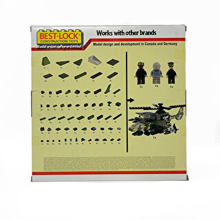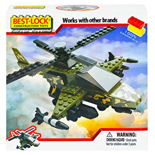 Відмінний набір конструктора BEST-LOCK (Бест Лок), що складається з 240 елементів, включаючи дві рухомі фігрки. З деталей конструктора вийде дуже схожий справжній військовий вертоліт. Вертоліт має довгі лопаті. Під крилами розташовуються по чотири кулемети та по одній ракеті.
