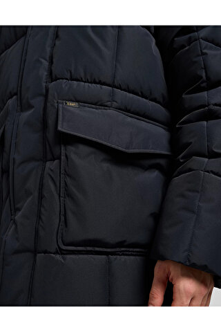 Стильна та практична подовжена куртка Lee Mercury призначена для комфортного захисту в холодну та дощову погоду. Модель виконана з міцного водовідштовхувального матеріалу з використанням переробленого поліестеру, що робить її не тільки зносостійкою, але й екологічнішою. Додаткове тепло забезпечує високий комір, планка на кнопках, по всій довжині блискавки та капюшон. Подвійні кишені з клапанами оснащені зручними бічними прорізами і застібкою на кнопці, також є одна внутрішня кишеня. Виконана у суто чорному кольорі — Unionall Black. Структурований стьобаний верх і вільний крій роблять куртку не тільки зручною, а й стильною.