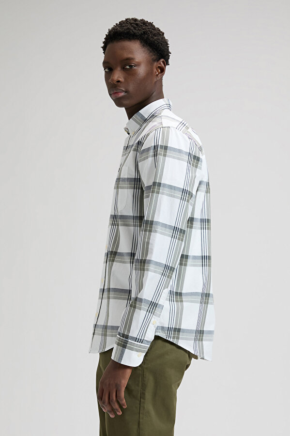 Lee Button Down — это идеальное сочетание классической элегантности, комфорта и безупречного качества. Модель выполнена в универсальном крое Regular Fit, который обеспечивает аккуратную посадку и комфортную свободу движений. Такой силуэт подходит большинству типов фигуры, отлично смотрится как в повседневных, так и в более элегантных образах. Особенностью изделия является классический воротник Button Down, края которого аккуратно фиксируются на пуговицах. Эта деталь придаёт рубашке более утончённый и аккуратный вид. Изготовлена из натурального хлопкового материала. Такая ткань отличается легкостью, воздухопроницаемостью и высокой износостойкостью. Представлена в цвете Lichen Navy Plaid - привлекательно оливковой и темно-синей клетке. Благодаря универсальному стилю рубашка легко комбинируется с джинсами, чиносами и классическими брюками.
