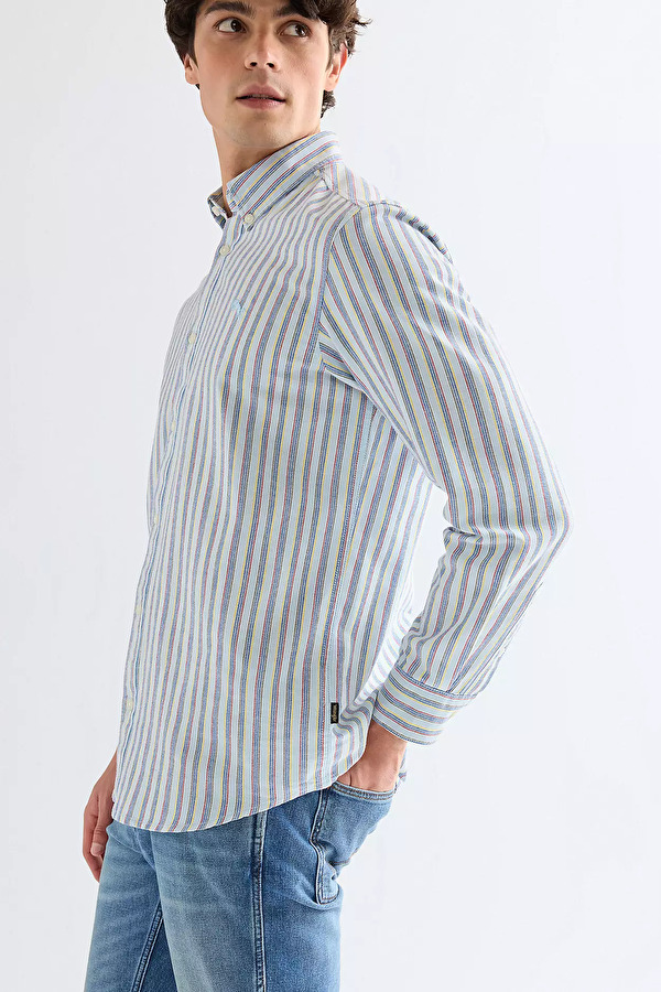 Рубашка Wrangler Oxford Shirt - современная интерпретация классики, где лаконичный дизайн сочетается с продуманным кроем и комфортом на каждый день. Прямой силуэт, естественное прилегание, классическая линия плечь и оптимальная длина позволяют носить рубашку как заправленной, так и навыпуск. Длинный рукав добавляет функциональности и делает модель актуальной в любое время года. Особенностью изделия является классический воротник Button Down, края которого аккуратно фиксируются на пуговицах. Модель выполнена из oxford-хлопка — плотной, но дышащей приятной к телу ткани с характерной фактурой переплетения. Такая ткань сохраняет аккуратный внешний вид даже при активной носке и идеально подходит для круглогодичного использования. Дизайн выдержан в минималистичном ключе: аккуратная строчка, застёжка на пуговицы и фирменные детали Wrangler подчёркивают качество и аутентичность модели. Рубашка легко сочетается с джинсами, брюками или шортами, выступая как самостоятельный элемент или как часть многослойного образа.
