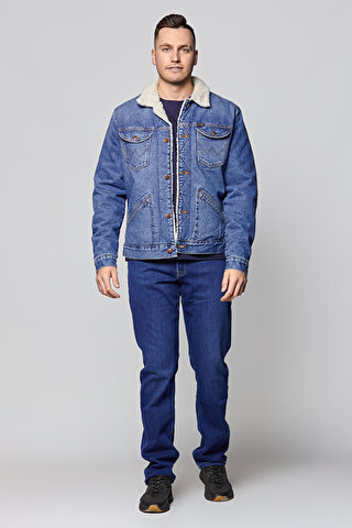 Куртка джинсовая мужская, шерпа, голубая 124MJ Sherpa Jacket от легендарного бренда Wrangler. Крой — Regular Fit (прямой). Имеет классический, прямой крой. Плотность ткани джинсовой куртки — 13 унций. Голубой цвет, однотонный. 4 кармана. Состав: 100% Хлопок. Изготовлена из высококачественного хлопка. Застегивается куртка на пуговицы. Спереди есть два накладных кармана с клапанами.