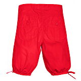 Шорты средней длины, с накладными карманами, снизу на завязках.