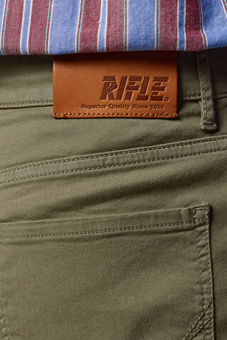Брюки чоловічі, зелені Style 931 від легендарного бренду Rifle. Середня посадка, пряма штанина. Фасон — Regular Fit. Застібка: блискавка. Щільність тканини — 7 унцій. Бежевий колір, однотонний. 5 кишень. Склад: 98% Бавовна, 2% Еластан. Виготовлені з високоякісної бавовни з додаванням еластану.