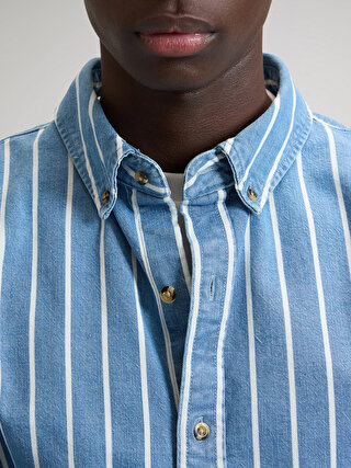 Lee Workwear Button Down – це гармонійне поєднання автентичної робочої естетики та сучасного преміального casual-стилю. Прямий крій м'яко лягає по фігурі, не обмежуючи руху та створюючи елегантну, природну посадку. Така конструкція робить сорочку універсальною — вона однаково гармонійно виглядає як у розслаблених повсякденних образах, так і більш зібраних комплектах. Особливістю виробу є класичний комір Button Down, краї якого акуратно фіксуються на ґудзиках. Дизайн моделі витриманий в мінімалістичній естетиці, завдяки чому сорочка легко вписується в гардероб і залишається актуальною поза часом та сезонними трендами. Структурований денім виготовлений із суміші регенерованої бавовни та віскози, що робить його більш легким та дихаючим. Представлена у фірмовому візерунку "джинсові смуги" — сучасної інтерпретації класичного робочого стилю. Акуратний контрастний рядок, фірмова фурнітура, ідеально оброблені внутрішні шви, брендова символіка підкреслюють спадщину та майстерність бренду Lee. Regular Western Shirt – це впевнена класика деніму, де традиції, стиль та якість поєднуються в одній бездоганній речі.