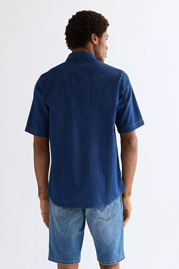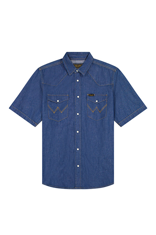 Сорочка Wrangler Western Shirt – сучасна інтерпретація культового ковбойського стилю з акцентом на чистий силует та продумані деталі. Злегка приталений крій, природне прилягання, класична лінія плечей та оптимальна довжина дозволяють носити сорочку як заправлену, так і навипуск. Фірмові загострені кокетки спереду та ззаду підкреслюють традиційний western-стиль. Короткий рукав додає легкості та робить модель ідеальною для повсякденних літніх образів. Виконана із якісного бавовняного матеріалу. Тканина приємна до тіла, добре тримає форму та відрізняється високою зносостійкістю. Представлена у синьому кольорі. Деталі формують відомий стиль: нагрудні кишені з клапанами, кнопки, контрастний рядок та фірмовий логотип Wrangler Ці елементи підкреслюють автентичність моделі та її зв'язок із спадщиною бренду.