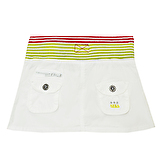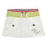 Детская летняя юбка на девочку испанского бренда Losan. Короткая белая юбка с накладными карманами на широкой резинке, затягивается на шнурок. Резинка в салатовую и красную полоску. На левом кармане буквенный принт. Юбочка сочетается с футболКАМИ, майками и топами.