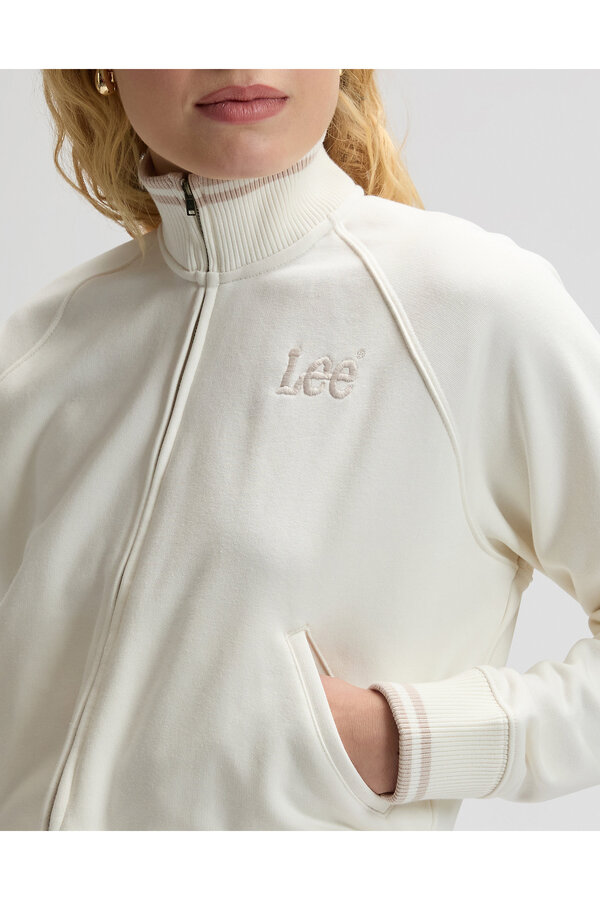 Світшот LEE ZIP UP – стильна та комфортна річ для повсякденного гардеробу. Модель виконана у сучасному вільному крої Relaxed Fit, завдяки чому чудово сидить по фігурі та забезпечує максимальний комфорт протягом дня. Рукави реглан і застібка на блискавці ідеально підходять для багатошарового одягу. Неворсиста, м'яка та приємна до тіла, флісова тканина виготовлена із суміші бавовни та переробленого поліестеру. Еластичні манжети на рукавах і щільна резинка нижнього краю допомагають світшоту добре тримати форму і забезпечують акуратну посадку. Модель представлена в кольорі «екрю», більш м'якій альтернативі класичному білому. Дизайн виконаний у мінімалістичному стилі із фірмовими елементами бренду Lee. Завдяки лаконічному вигляду модель легко комбінується з джинсами, брюками, шортами або спортивними штанами.
